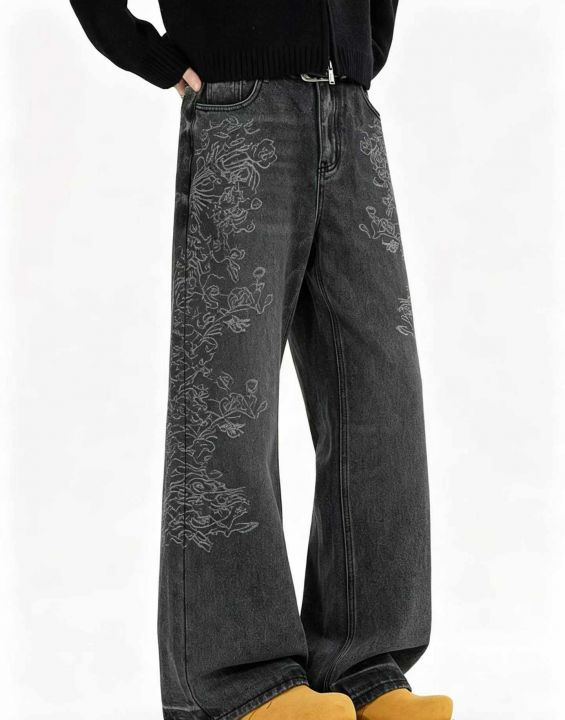 美式cleanfit牛仔裤男潮牌复古宽松百搭阔腿休闲垂感长...