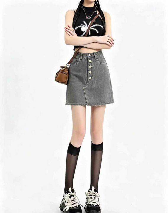 ☕️不规则排扣牛仔短裙女夏季新款显瘦牛仔A字裙249条...