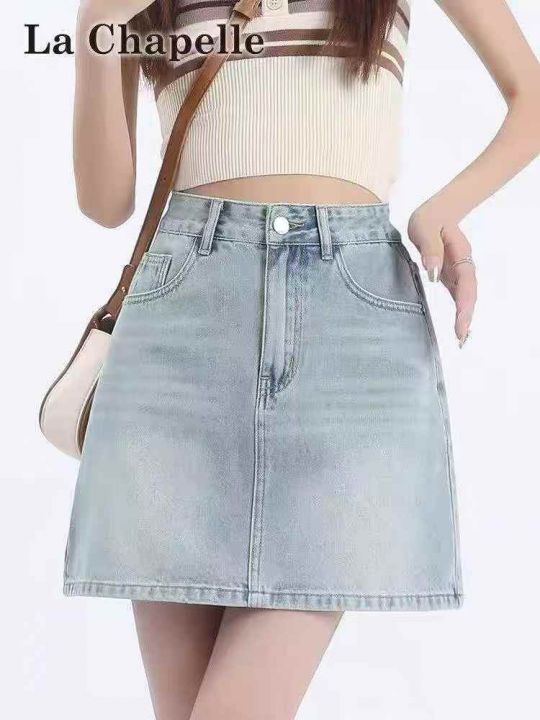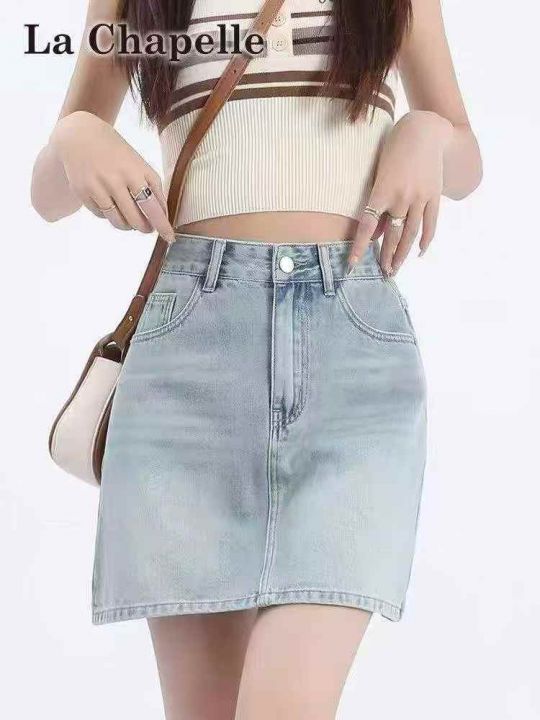 ☕️浅色牛仔半身裙女薄款高腰显瘦辣妹包臀a字短款短...