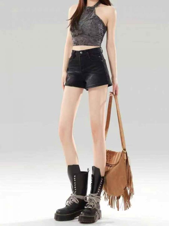 ☕️黑色高腰A字显瘦牛仔短裤女新款辣妹潮热裤子208条...