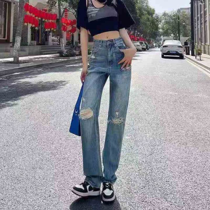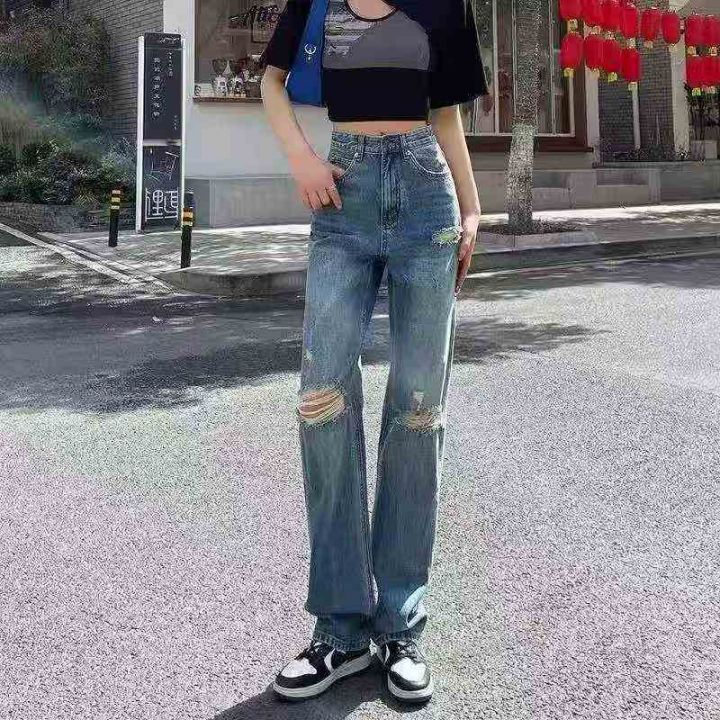 ☕️辣妹破洞牛仔裤女高腰复古直筒阔腿裤154条全清8.8元,码数SM,正品独立包装[庆祝][庆祝][庆祝]