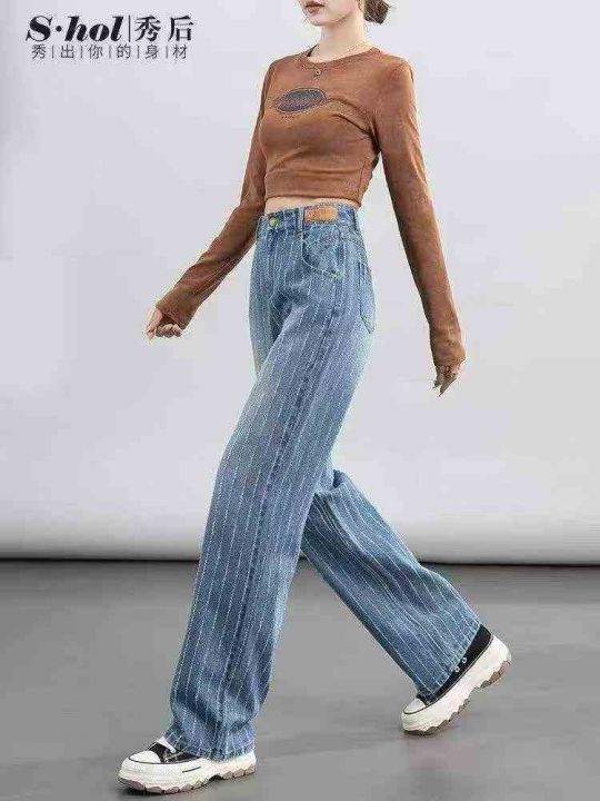 ☕️大码胖mm蓝色磨破提花牛仔裤新款高腰宽松九分裤14...