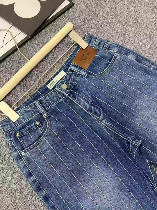 ☕️大码胖mm蓝色磨破提花牛仔裤新款高腰宽松九分裤140条全清9.8元,码数28-36,正品独立包装[庆祝][庆祝][庆祝]