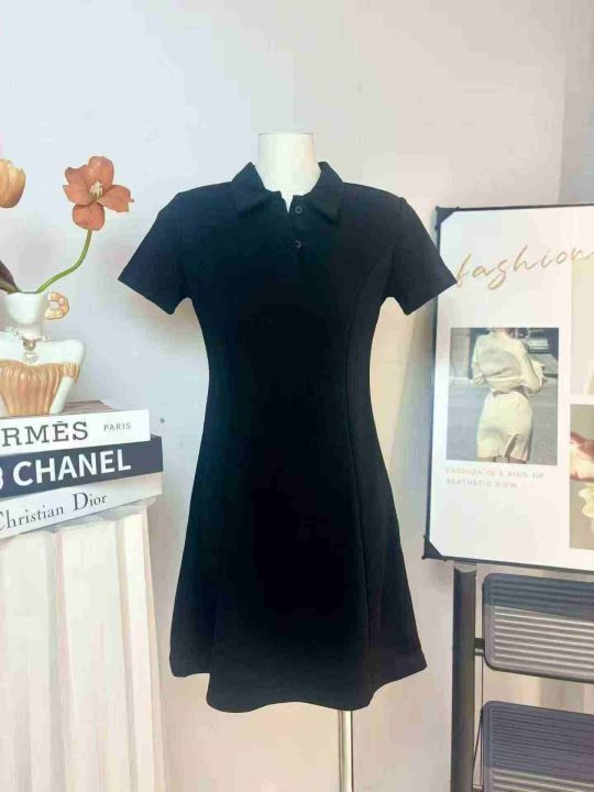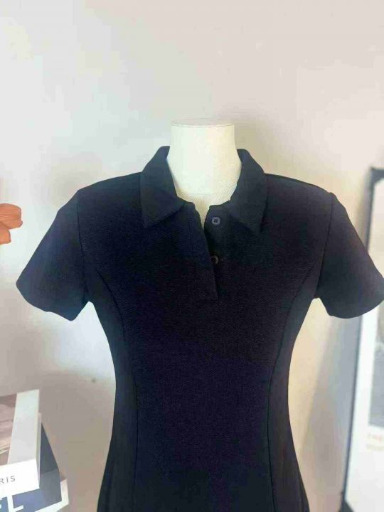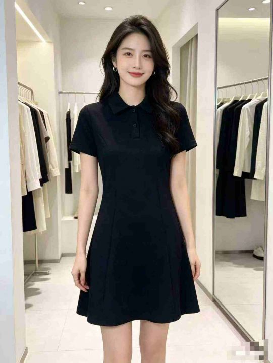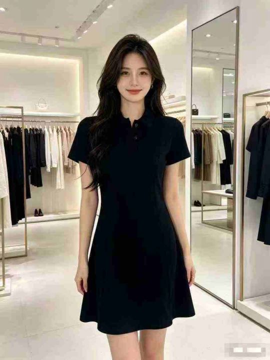 200多件甜辣妹纯欲风短袖连衣裙女夏季韩版百搭修身显瘦半开POLO领中长裙。工厂新货。全清不分货