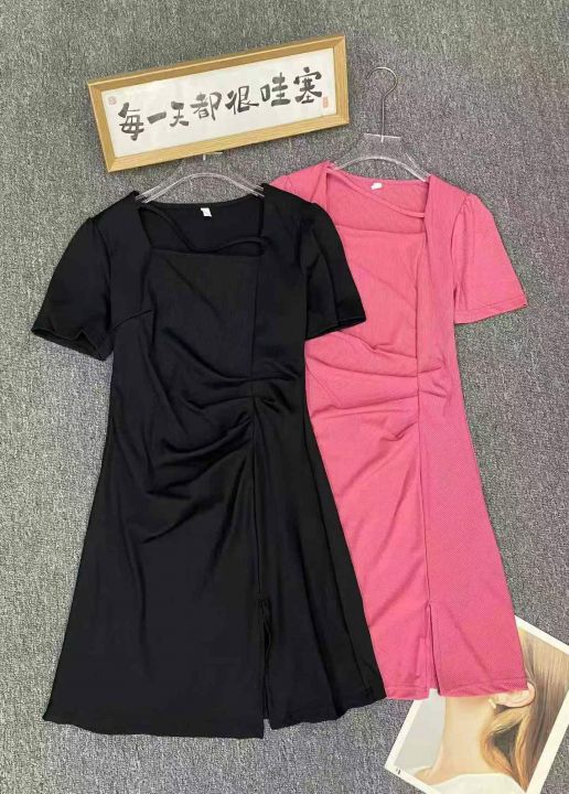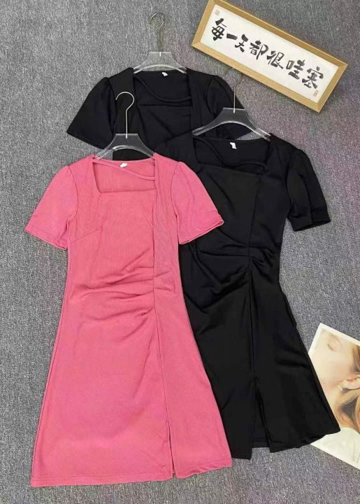 纯欲设计感方领斜条连衣裙375件8.5,面料舒适有弹力,...