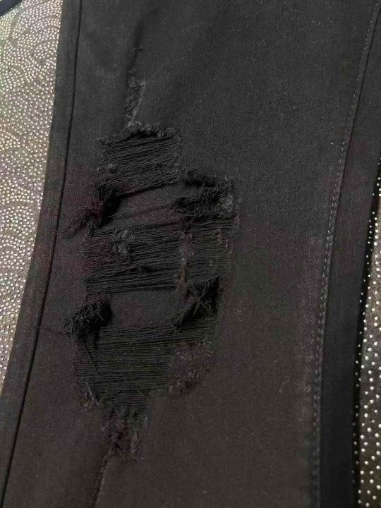黑色个性破洞弹力微喇叭牛仔裤 111件,全清11.8元,每条带皮带,正品独立包装,货品干净,码数S到XL,夏季新款 不规则破洞微喇叭打底裤子女薄款弹力牛仔裤