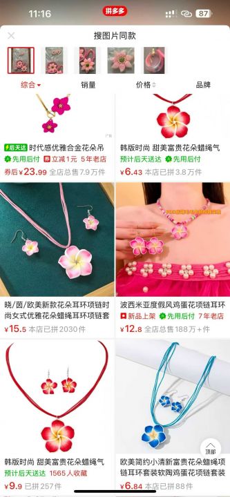 饰品花朵耳环项链套装 几百套