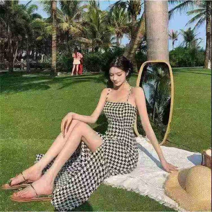 气质格子吊带连衣裙 274件,全清7.8元,货品干净,正品独立包装,码数~M到XL,格子长裙连衣裙2026显瘦夏季吊带女设计感新款收腰开叉潮气质