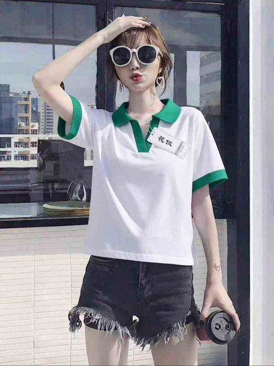5.9元,靓妹短袖V领T恤棉质辣妹polo衫,562件,M-2XL...