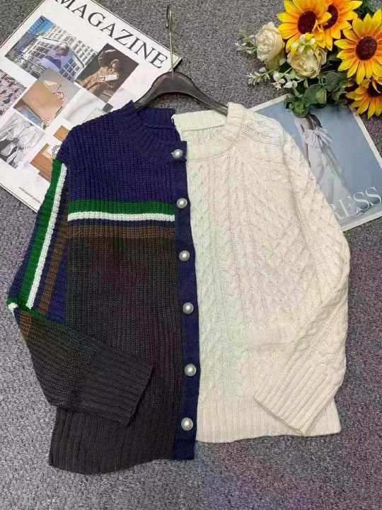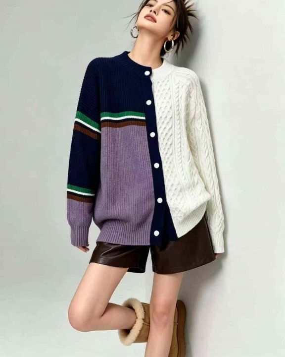 秋冬新款复古撞色拼接设计款麻花慵懒风毛衣开衫外套,...