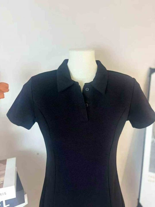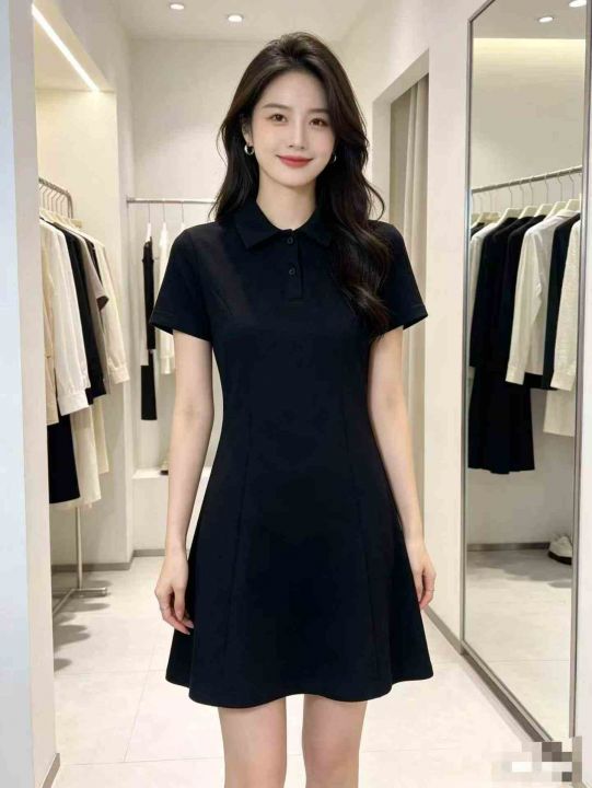 200多件甜辣妹纯欲风短袖连衣裙女夏季韩版百搭修身显瘦半开POLO领中长裙。工厂新货。全清不分货