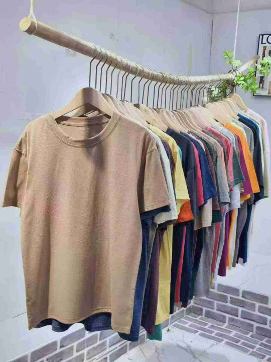 数量15000件左右,码数XS一5XL,10件一包装,单款多色(40多种左右颜色),男装T恤短袖,女装T恤短袖全部后领包边,统一面料(人棉),分货4.5