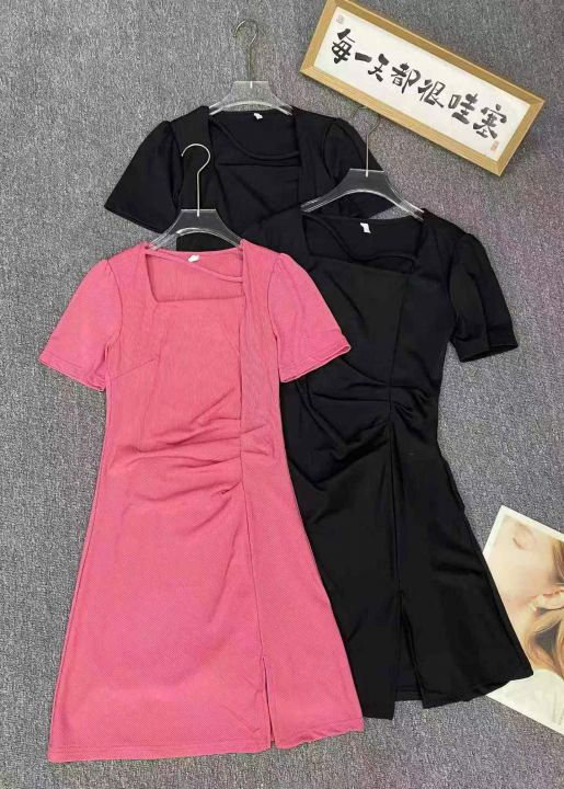 纯欲设计感方领斜条连衣裙375件8.5,