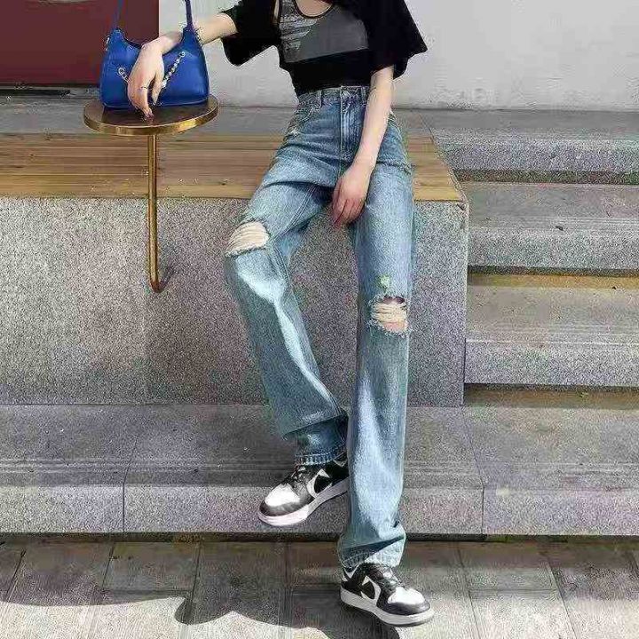 ☕️辣妹破洞牛仔裤女高腰复古直筒阔腿裤154条全清8.8元,码数SM,正品独立包装[庆祝][庆祝][庆祝]