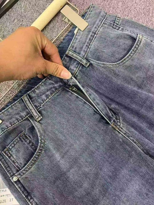 弹力夏季高腰牛仔裤女时尚复古破洞九分老爹裤哈伦显瘦牛仔裤100条全清10.8...
