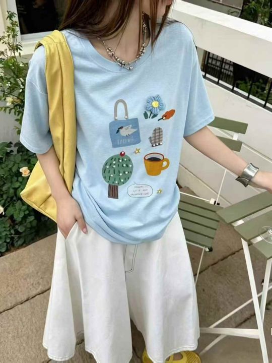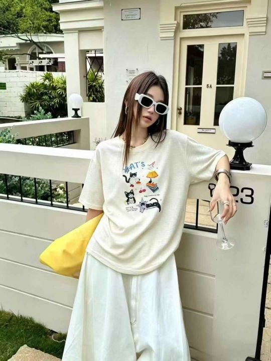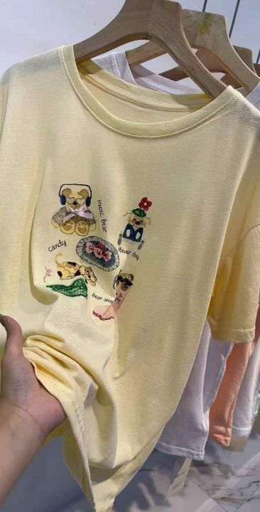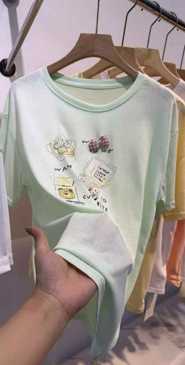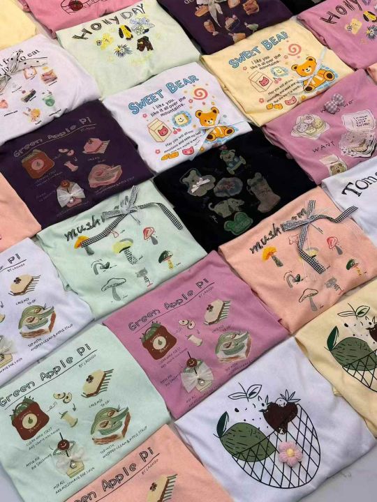 面料软糯透气垂顺,软到不想脱~宽松肥宽版型,藏肉一绝,不管是微胖还是小个子都能穿,原相机实拍,色系清爽,手绘卡通印花➕手工订珠/立体装饰,超精致又韩里韩气的~