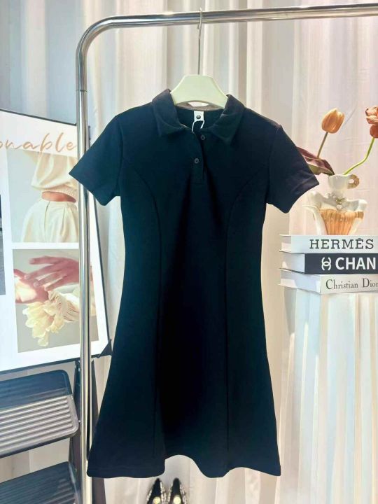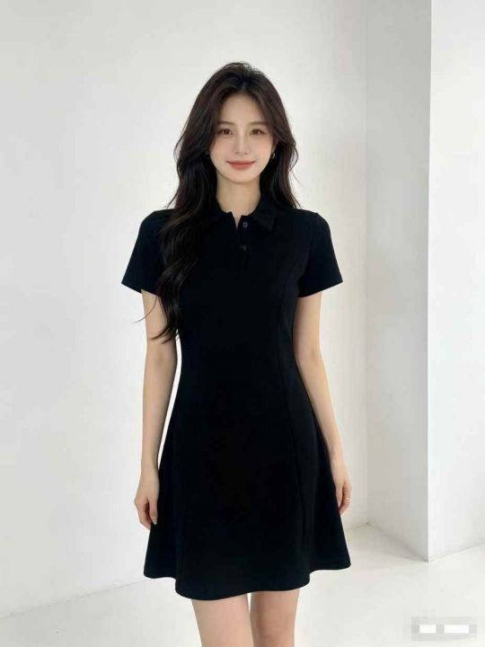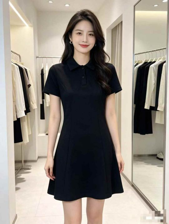 200多件甜辣妹纯欲风短袖连衣裙女夏季韩版百搭修身显瘦半开POLO领中长裙。工厂新货。全清不分货