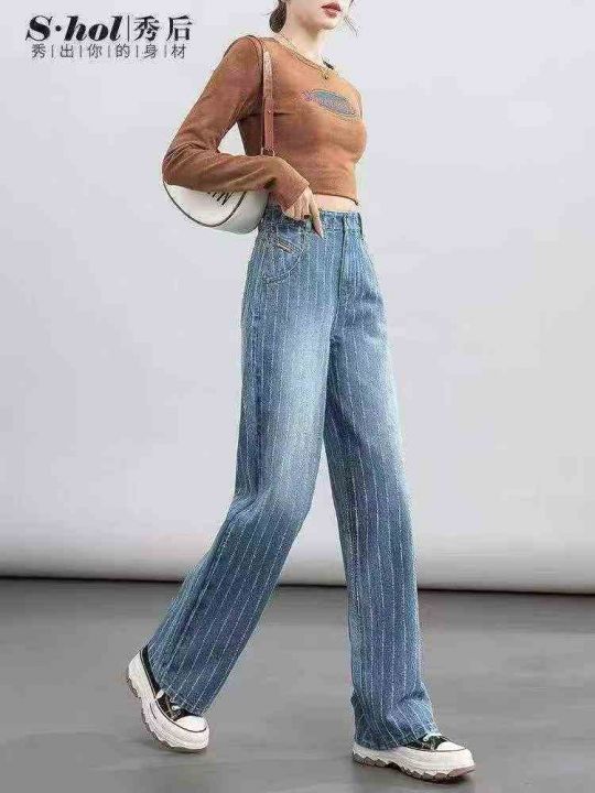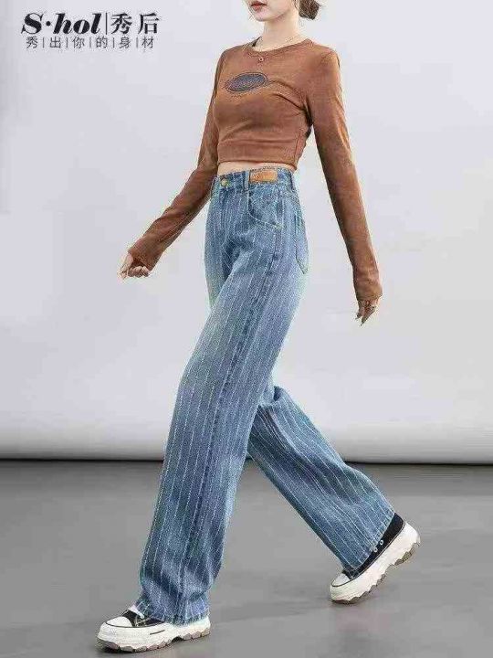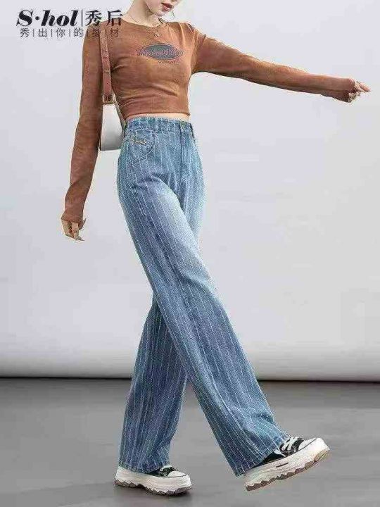 580件韩系松弛感复古做旧小辣妹高腰直筒烟灰色阔腿休闲牛仔裤,尺码2-5(S-X...