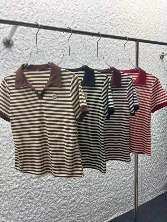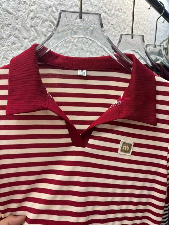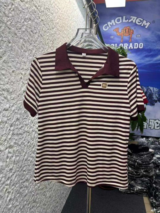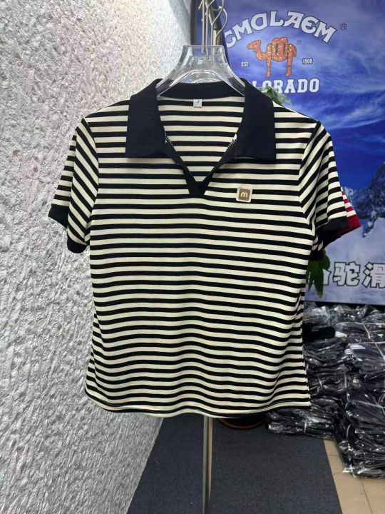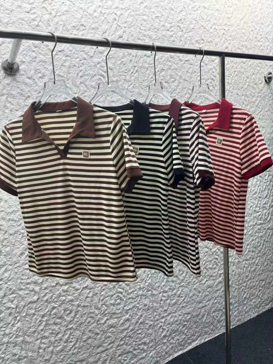 锦赛棉条纹妈妈衫V领 翻领款 经典刺绣小标 条纹系列。...