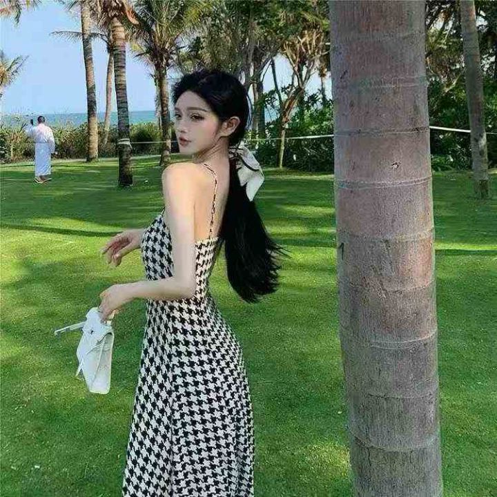 气质格子吊带连衣裙 274件,全清7.8元,货品干净,正品独立包装,码数~M到XL,格子长裙连衣裙2026显瘦夏季吊带女设计感新款收腰开叉潮气质