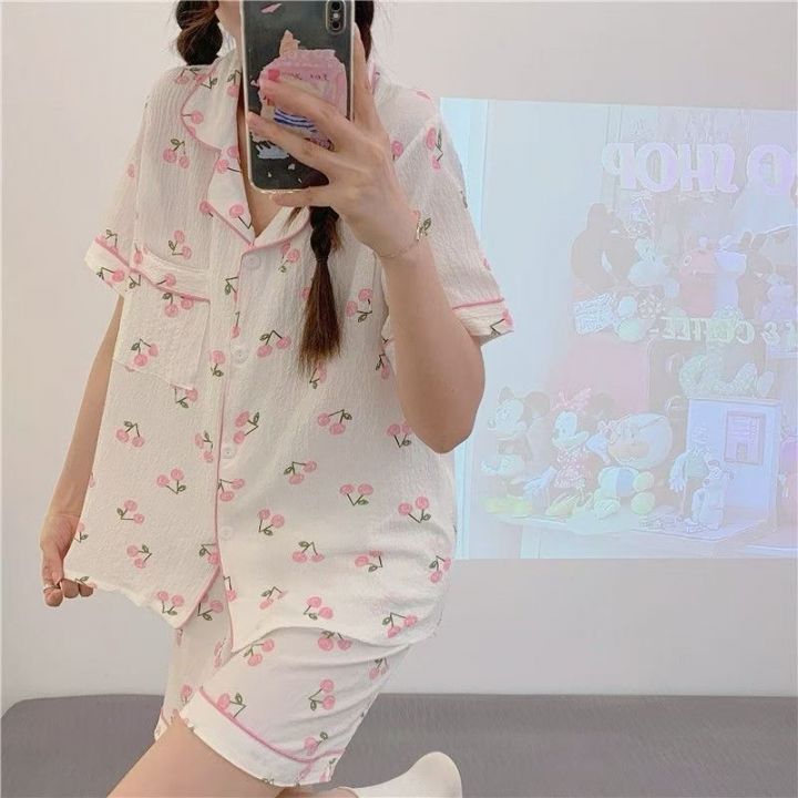 全清价13.81300套,新款睡衣女士夏天短袖两件套装夏季皱布薄款甜美可爱家居...