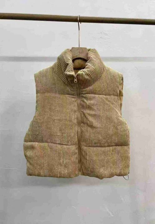 876件秋冬季显瘦叠穿灯芯绒加厚短款马甲棉服,面料柔软,保暖舒适,主要以黄色为主,S一XL,压缩包装加外包装。全清9.8