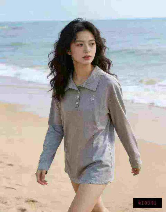 春秋新款洋气减龄百搭翻领POLO上衣简约设计感纯色长袖t恤衫,数量1740件,码数s-2xl,独立包装,全清4.8元