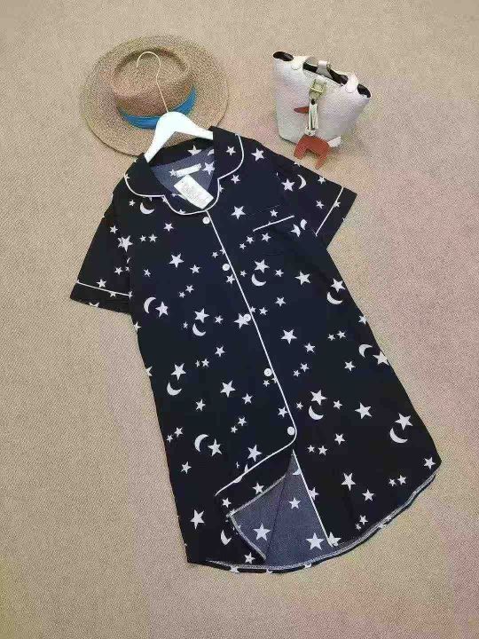 [月亮]:夏季垂顺纽扣开衫星星家居服睡裙