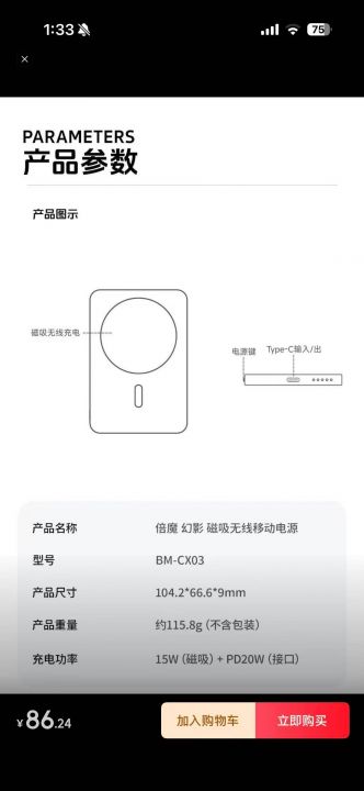 品牌倍魔磁吸充电宝到货 1000 个带 3C 认证全新裸机...