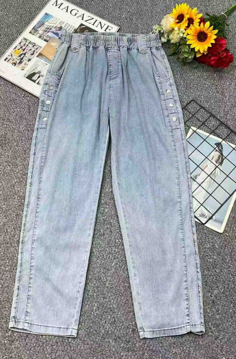 春夏季新款网红复古薄款松紧腰哈伦牛仔老爹裤,独立包装带腰卡,码数S- 4XL码,180件,全清11.8元超低价秒杀!