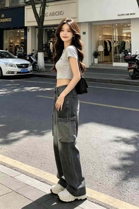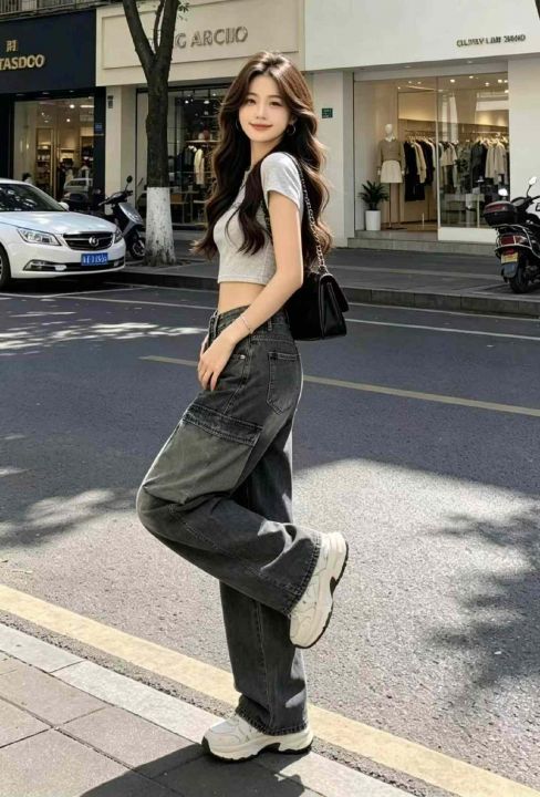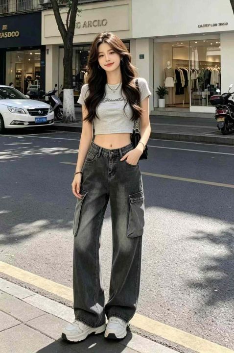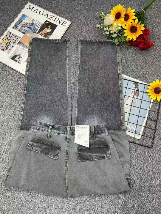 春季新款网红复古洗水棉直筒阔腿多袋工装牛裤,独立包...
