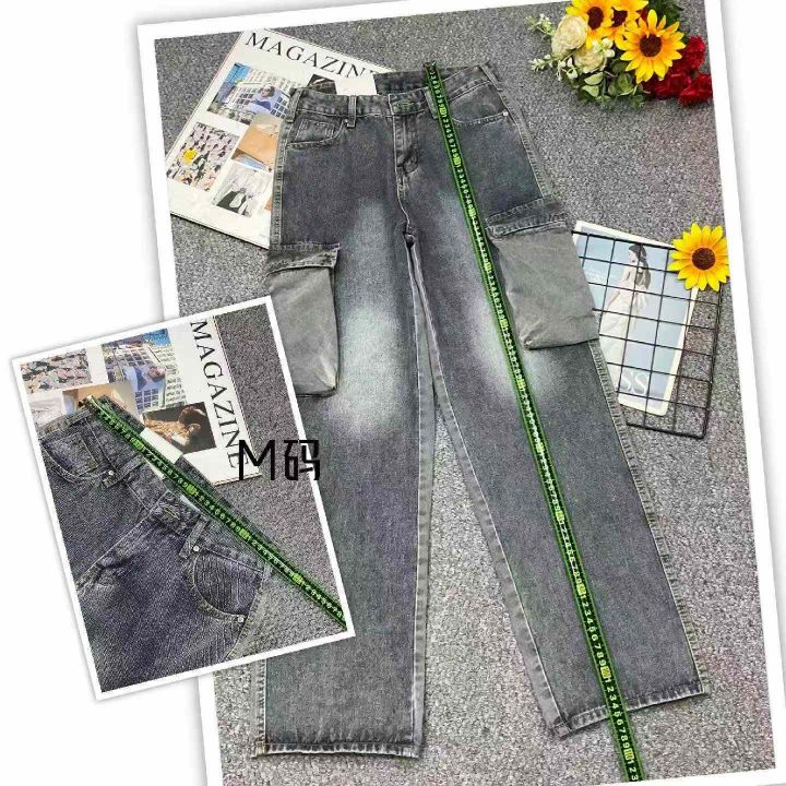春季新款网红复古洗水棉直筒阔腿多袋工装牛裤,独立包装带腰卡,码数S-XL码, 80件左右,全清12.8元超低价秒杀!
