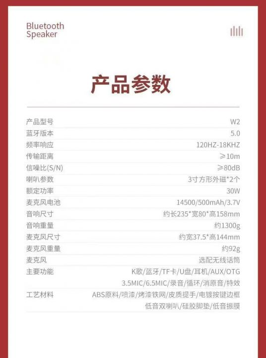 输出30W,音箱电池3600mah,麦克风500mah,12pcs一箱