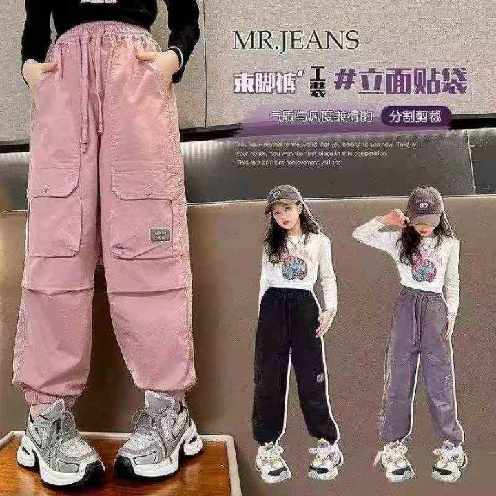 中大童女孩时髦潮酷运动裤休闲工装裤,独立包装,整款三色,码数120-170,数量1827条,分货加1,(K195)