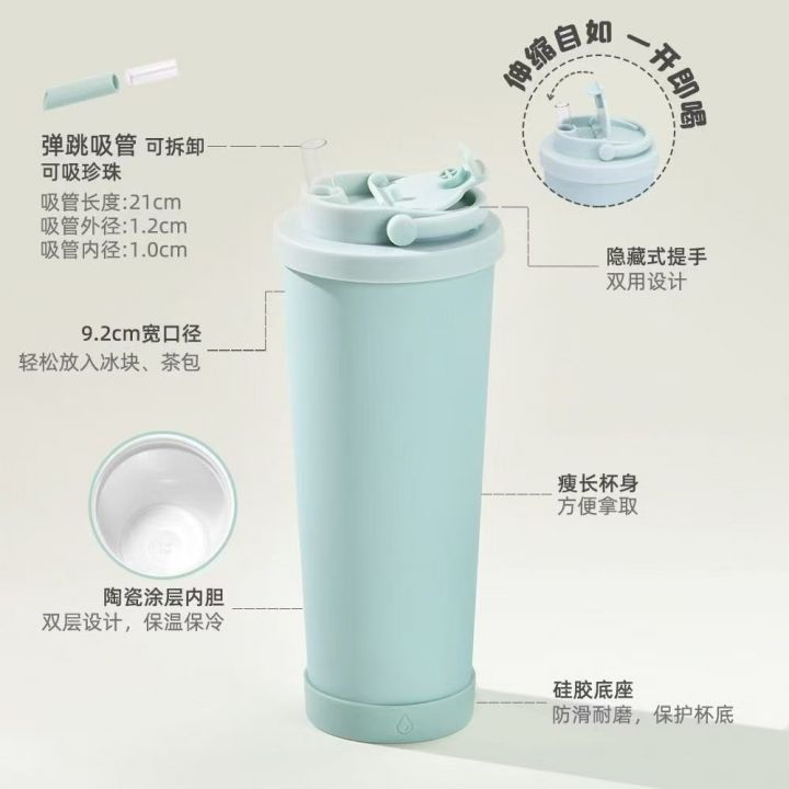 两色保温杯50个,830毫升,带手提304不锈钢,2件货,粉红色/淡绿色,配吸管+吸管刷