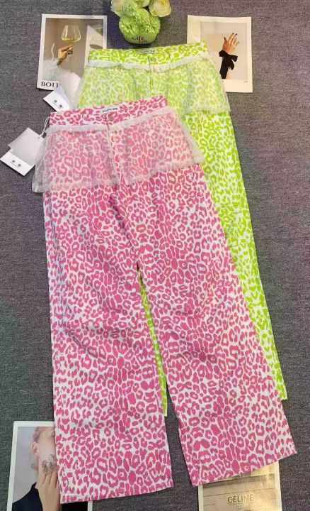 甜酷辣妹豹纹蕾丝拼接百搭牛仔裤,[爱心]240件左右,码数S-L,M码腰围72裤长114,单款两个色,穿70-130斤,广州十三行货,原包装️无瑕疵,[666]实体店品质,分货加一