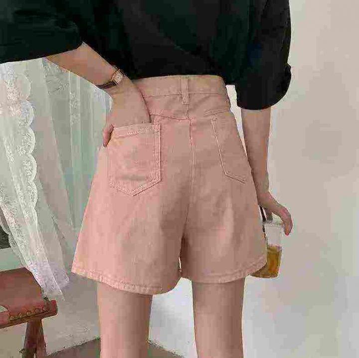 天猫在售款128件左右高品质女装高腰显瘦粉色系牛仔短裤,面料柔软高弹力,单款单色,S-XL,独立包装