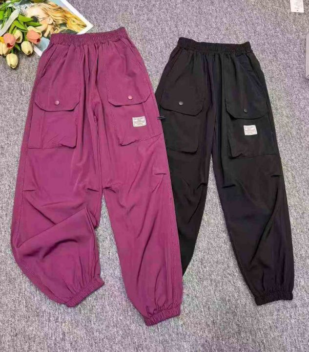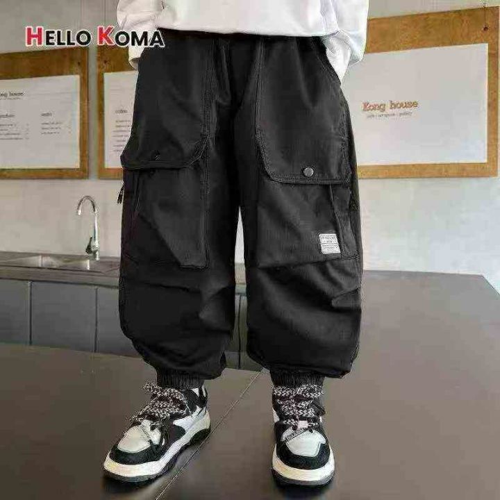 夏季热卖冰丝中大童多口袋潮牌束脚工装裤,独立包装,整款两色(黑色为主),码数120-170,数量352条,(K77)