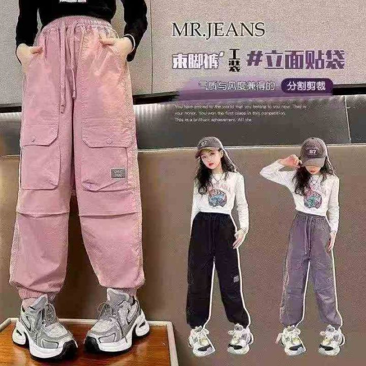 中大童女孩时髦潮酷运动裤休闲工装裤,独立包装,整款三色,码数120-170,数量1827条,分货加1,(K195)