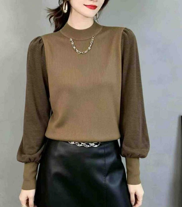 春季新款欧洲站时尚链条设计款拼接灯笼袖高档套头毛衣,独立包装,均码面料...