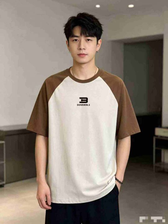 ✅美式街头风复古做旧撞色插肩短袖T恤,2343数量做工品质毋庸置疑,带立体3...
