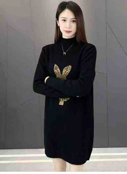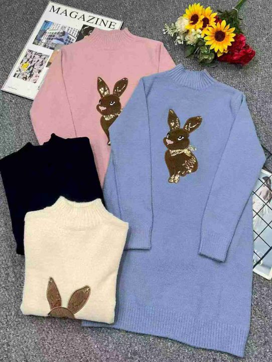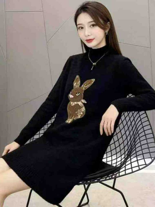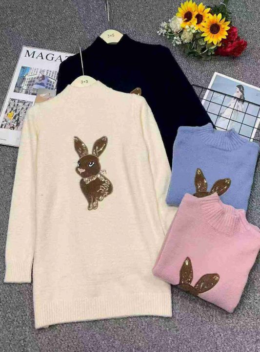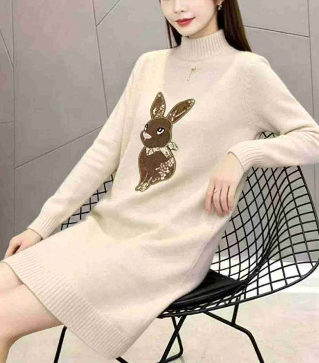 秋冬新款卡通提花加厚北极绒中长款套头毛衣,独立包装...