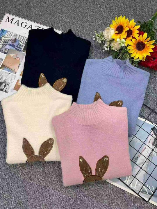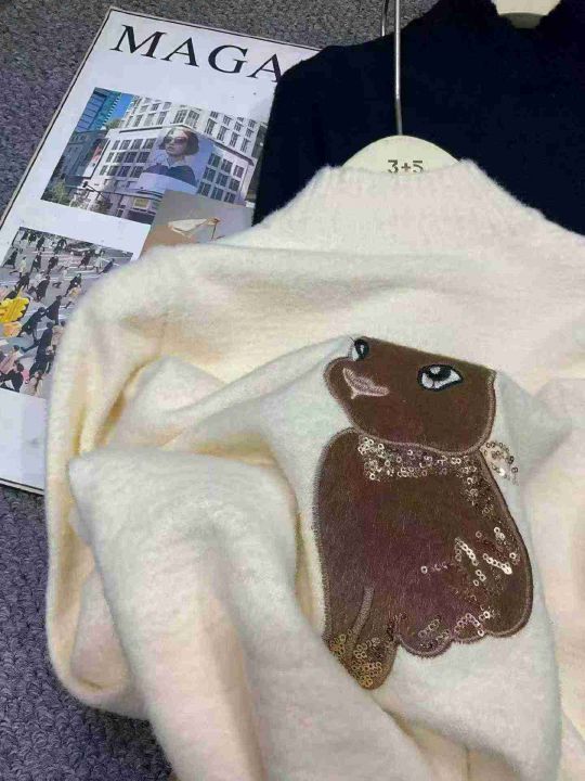 秋冬新款高品质韩系宽松百搭卡通提花包芯纱套头毛衣,独立包装,均码面料柔...