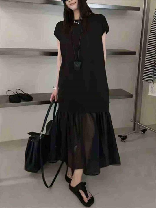 韩系简约休闲连衣裙469件7.8,面料舒适,网纱拼接码数...