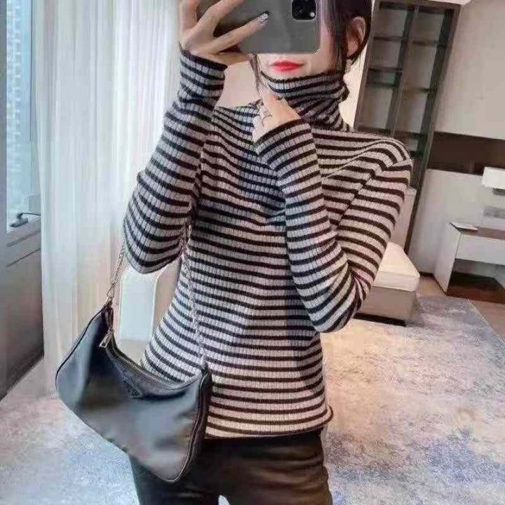 秋冬新款撞色条纹宽松百搭包芯纱打底套头毛衣,独立包...