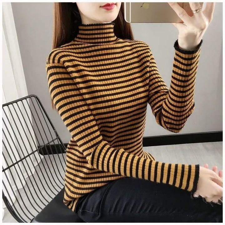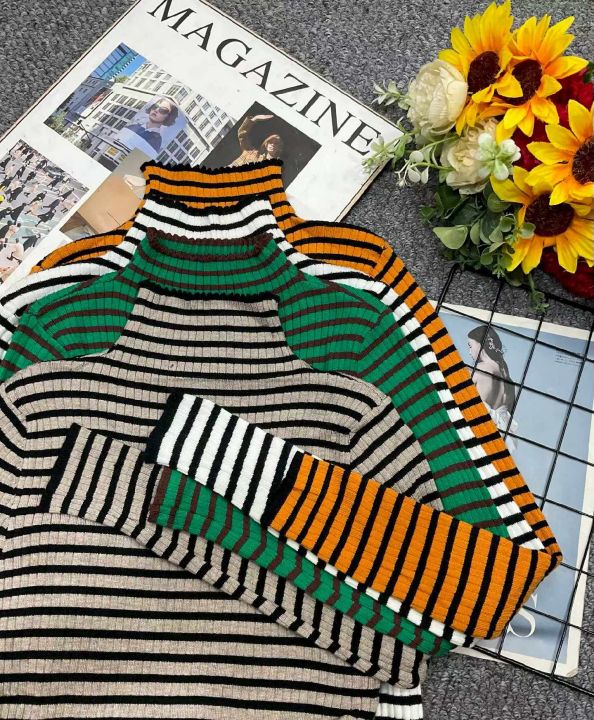秋冬新款撞色条纹宽松百搭包芯纱打底套头毛衣,独立包...