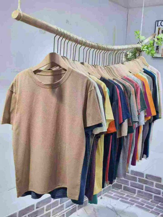 数量15000件左右,码数XS一5XL,10件一包装,单款多色(40多种左右颜色),男装T恤短袖,女装T恤短袖全部后领包边,统一面料(人棉),分货4.5