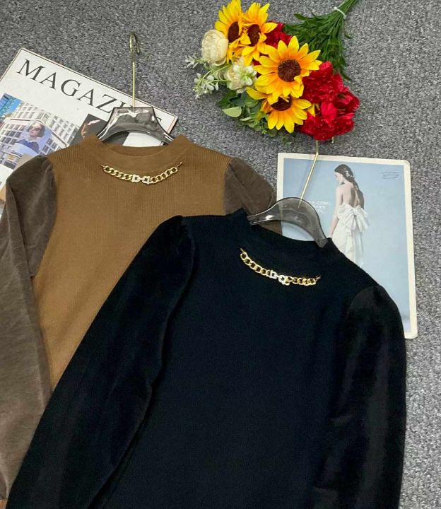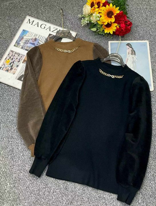春季新款欧洲站时尚链条设计款拼接灯笼袖高档套头毛衣,独立包装,均码面料柔软舒适弹力大,110件左右,全清7.9元超低价秒杀!