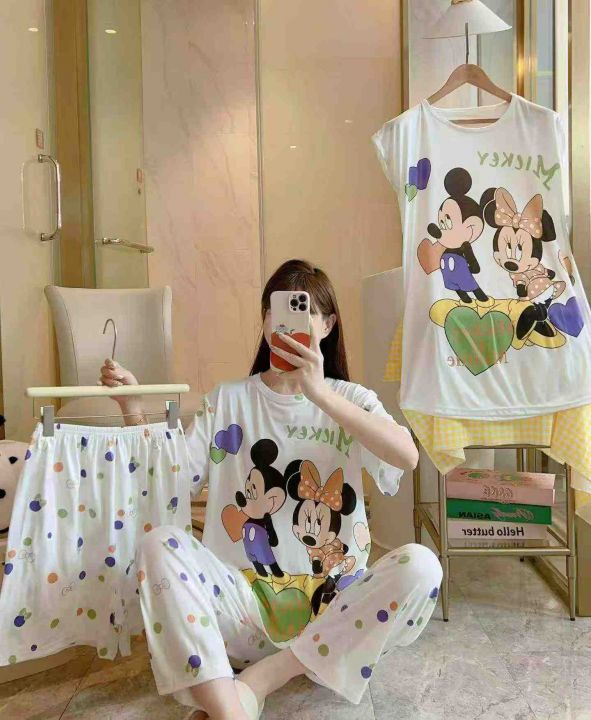 四件套☕️5600套全清22元,300套起23.8元,夏季家居服睡衣套装,四件套:短裤/长裤/睡裙,小整花型颜色多,独立包装,仿棉质量,少女感睡衣女夏季软萌趣味短袖薄款长裤可外穿家居服四件套