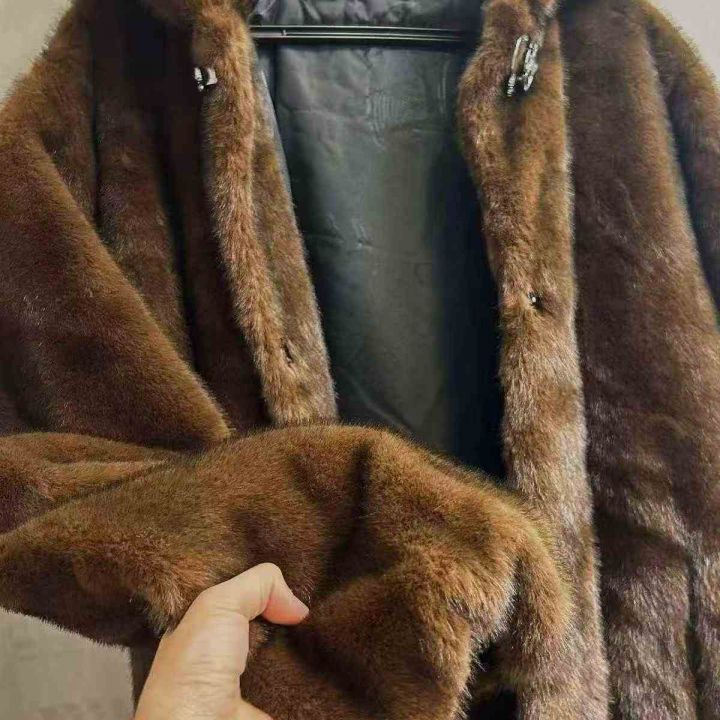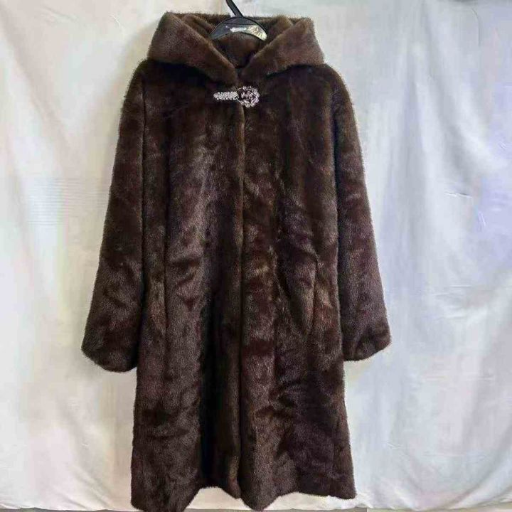 全清58.8,分货+1,貂绒外套女貂毛中长款大衣带帽仿皮草外套加厚,数量30件,码数M、XL,单款单色独立包装